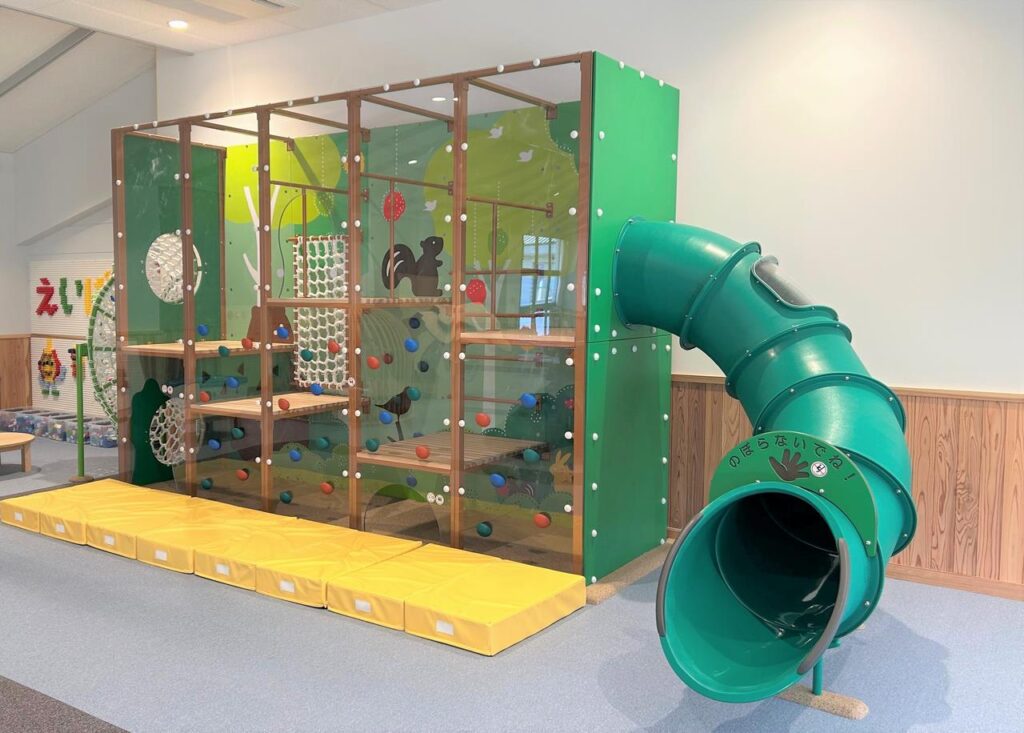 - 2025年1月25日に、まちなか交流センターにオープンした遊び場です。ネット遊具、トランポリン、クライミングウォールやボールプールなど、多彩な遊具があります。また、乳幼児が対象のエリアもあるため、安心して遊べます。