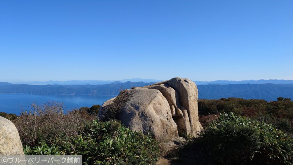 また、主峰の鬼ヶ岳の西に位置する標高525mの西鬼ヶ岳は、敦賀半島や日本海が一望できる展望スポットとなっています。