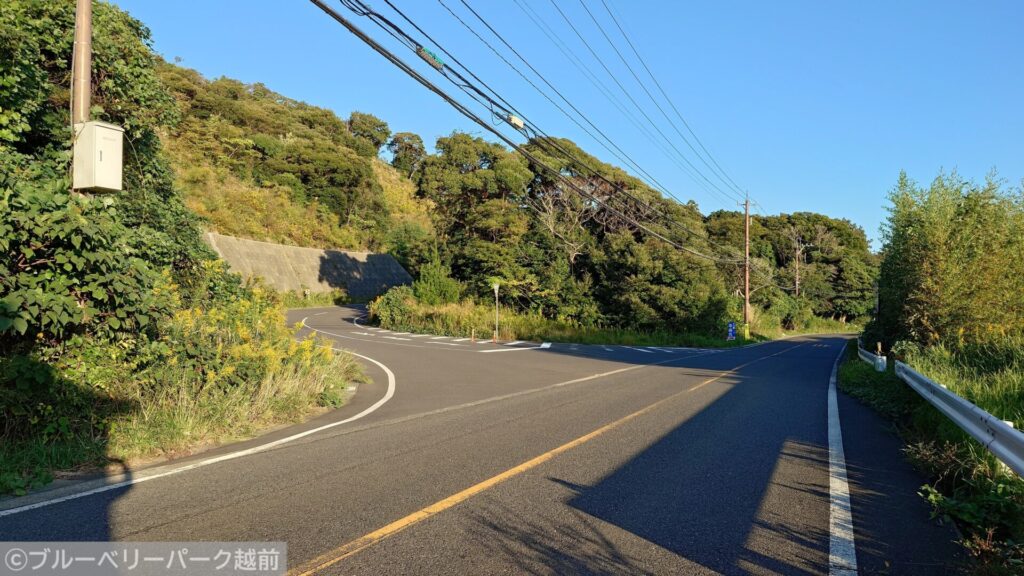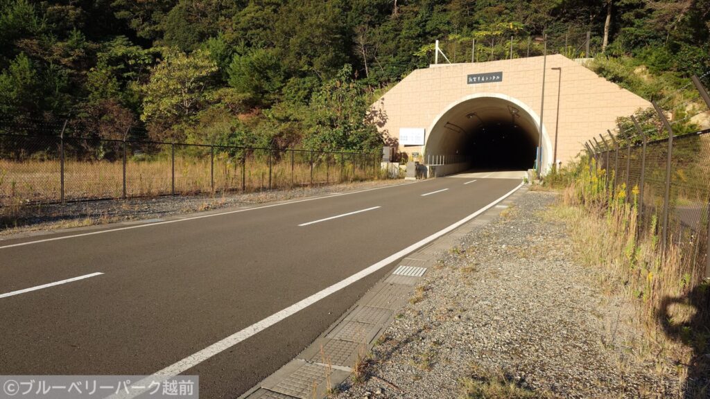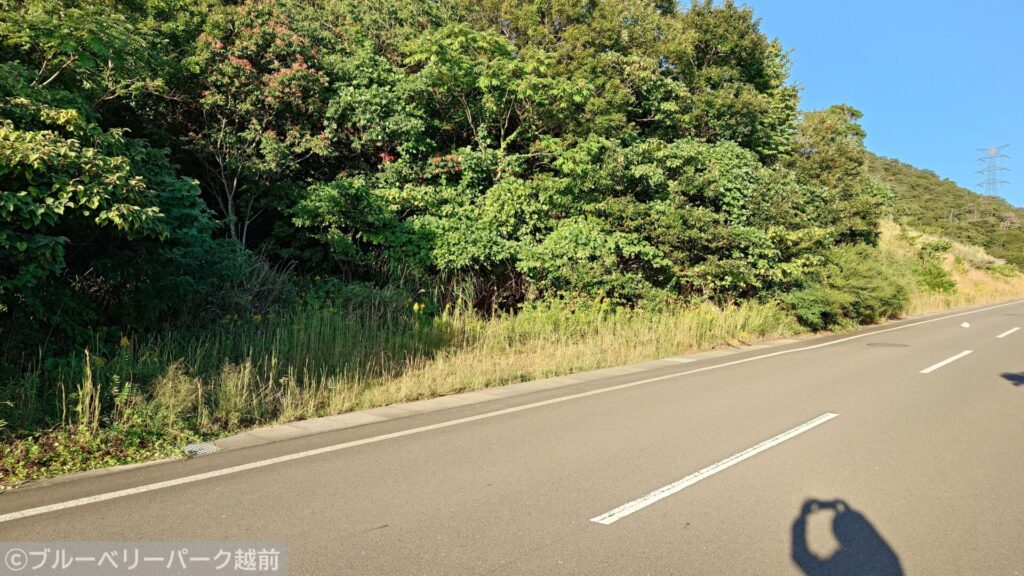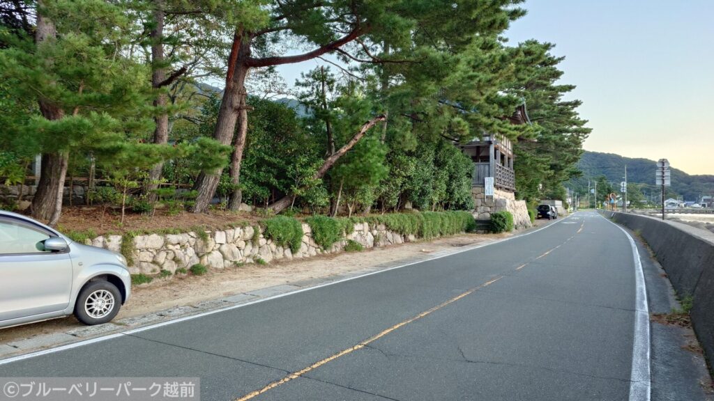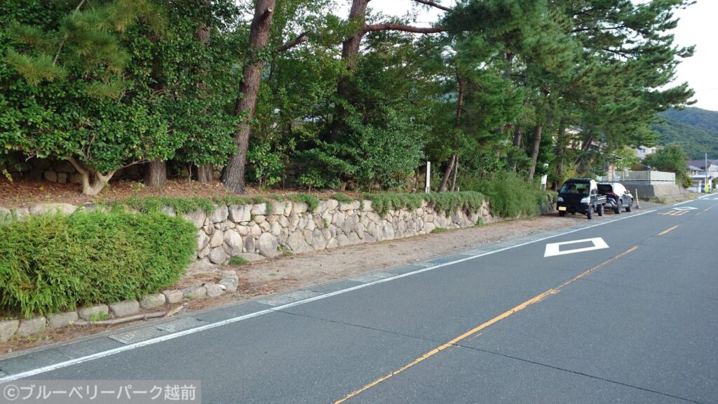 幹線道路をさらに進むと、敦賀半島トンネルがあり、出入口手前の広い路肩に、左右併せて10台ほどの駐車スペースがあります。