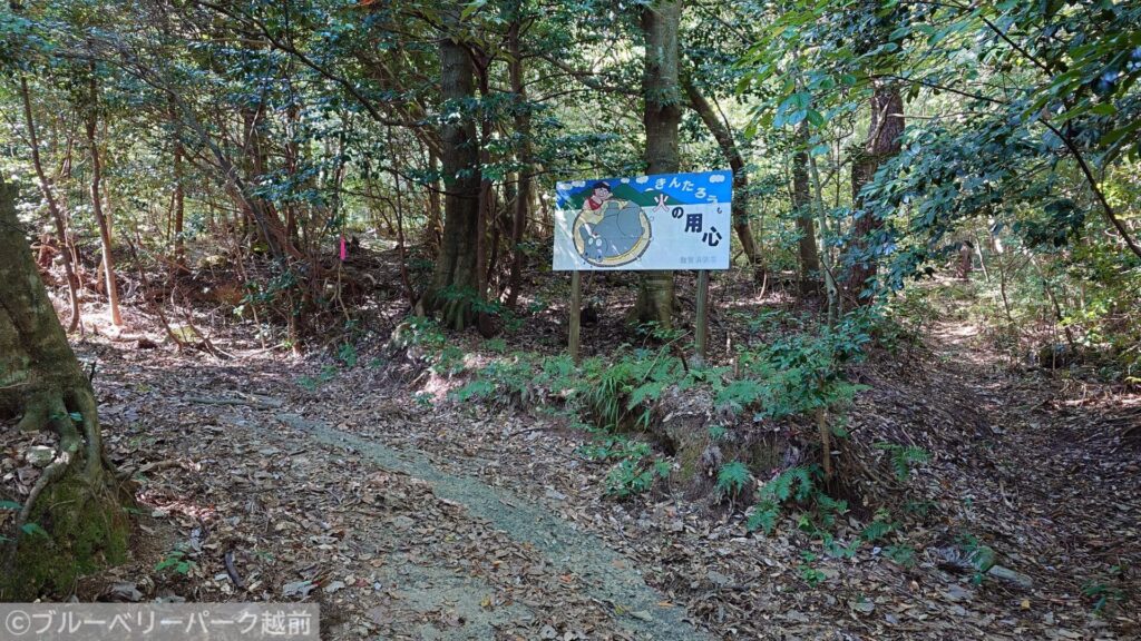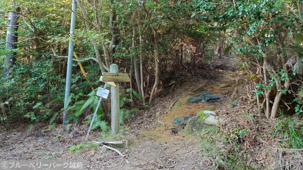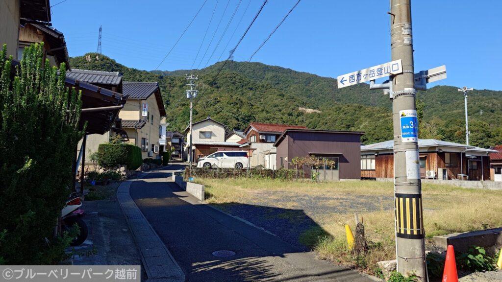 徒歩でT字路を直進した場合、看板に従って、登山口に向かいましょう。