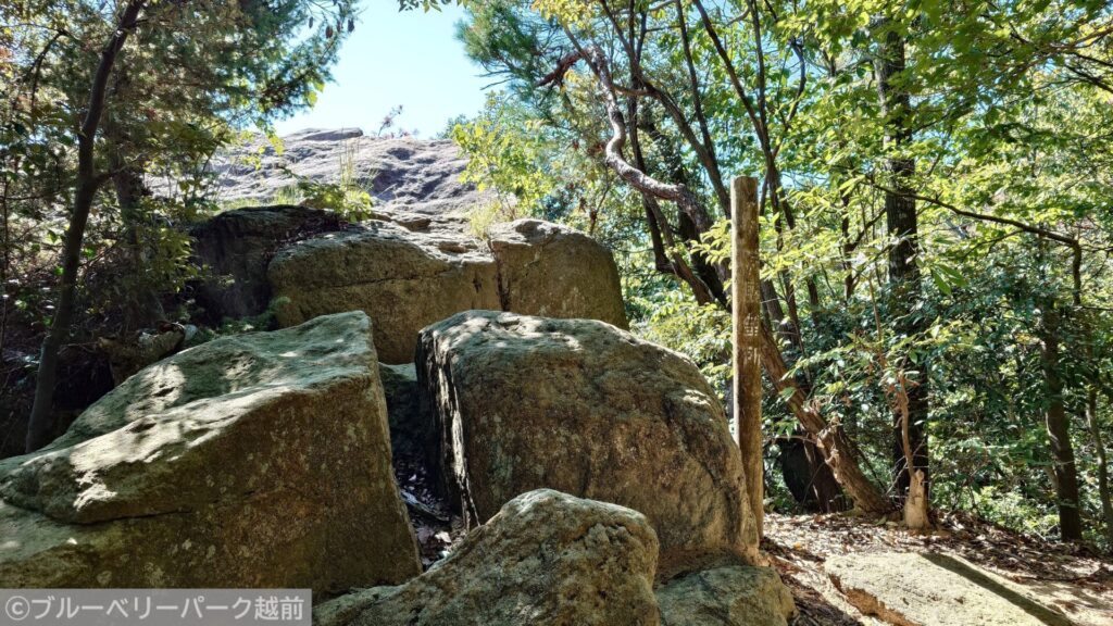 カモシカ台は開けた広場となっており、巨岩のほか、座ることのできる岩もあるため、休憩するのに適しています。
