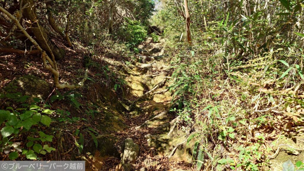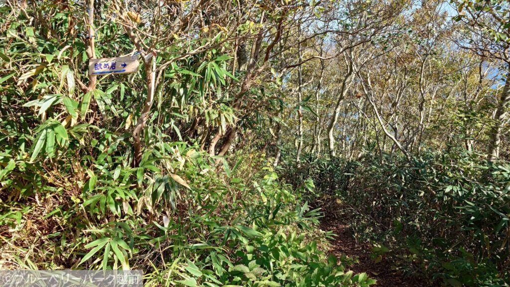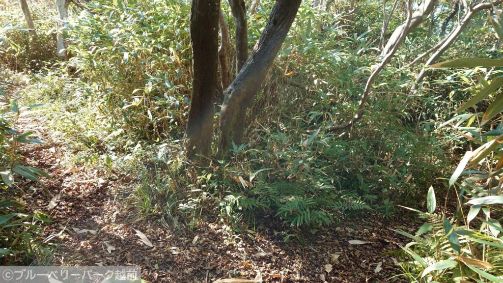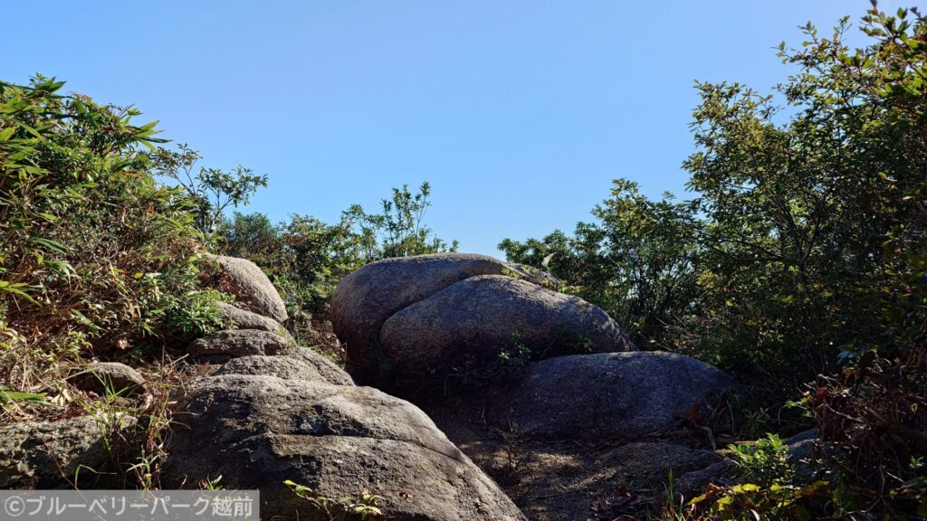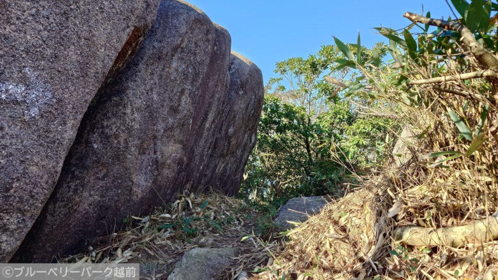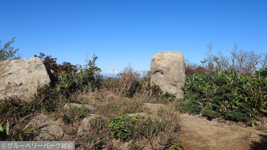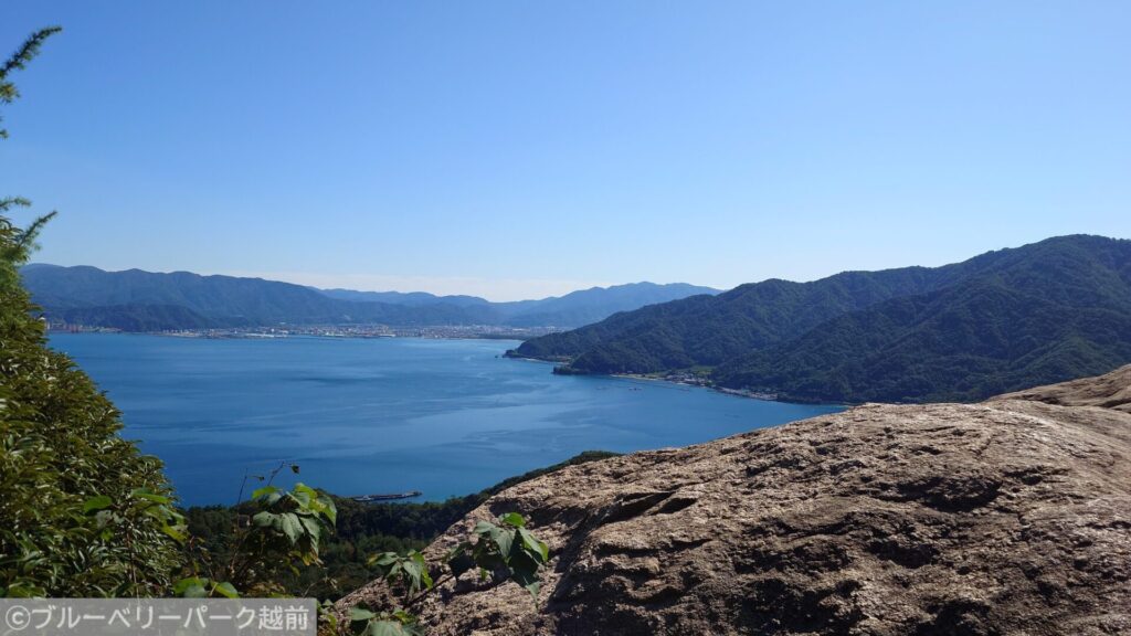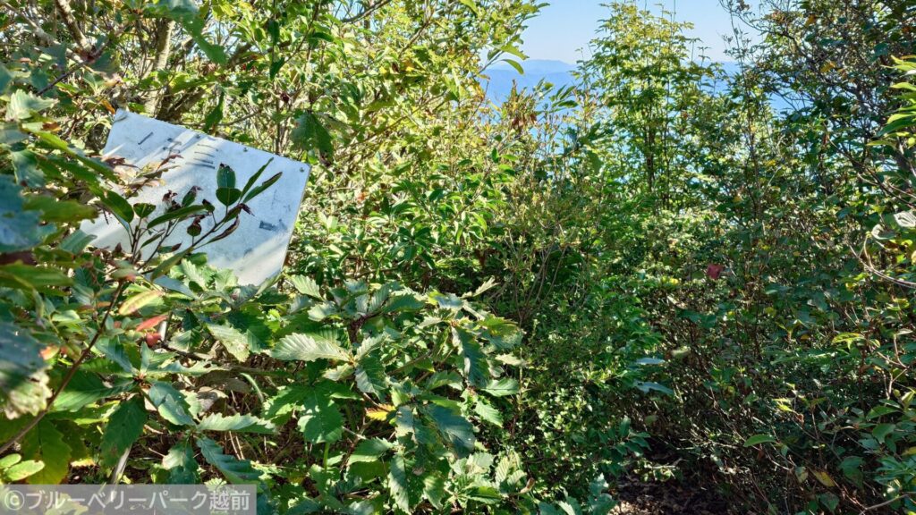 絶景ポイントが、山頂から敦賀湾の方向へ下る急な道の先にありますが、時期によっては藪が茂っているため、向かう際には注意しましょう。