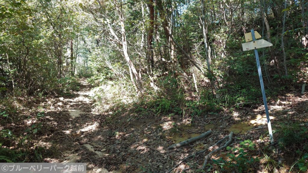 すぐに分岐があり、左手に50mほど進んだところに三角点があります。右手はカモシカ台、蠑螺ヶ岳への縦走路となっています。