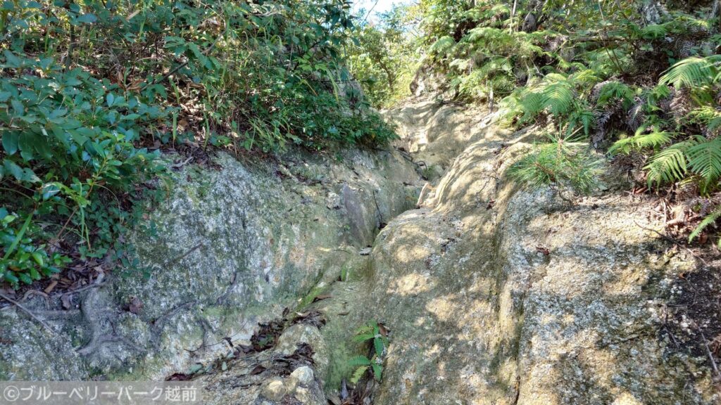岩盤の登山道が続きます。滑りやすくなっているところもあるため、注意しましょう。