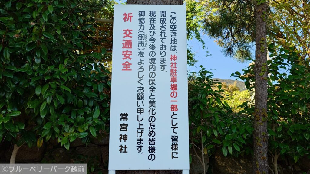 常宮神社の道路沿い以外の駐車場は、参拝者専用となっています。