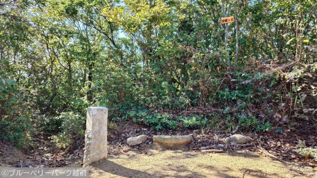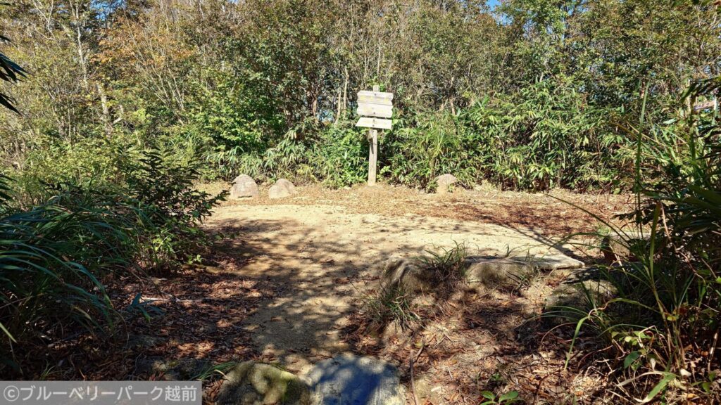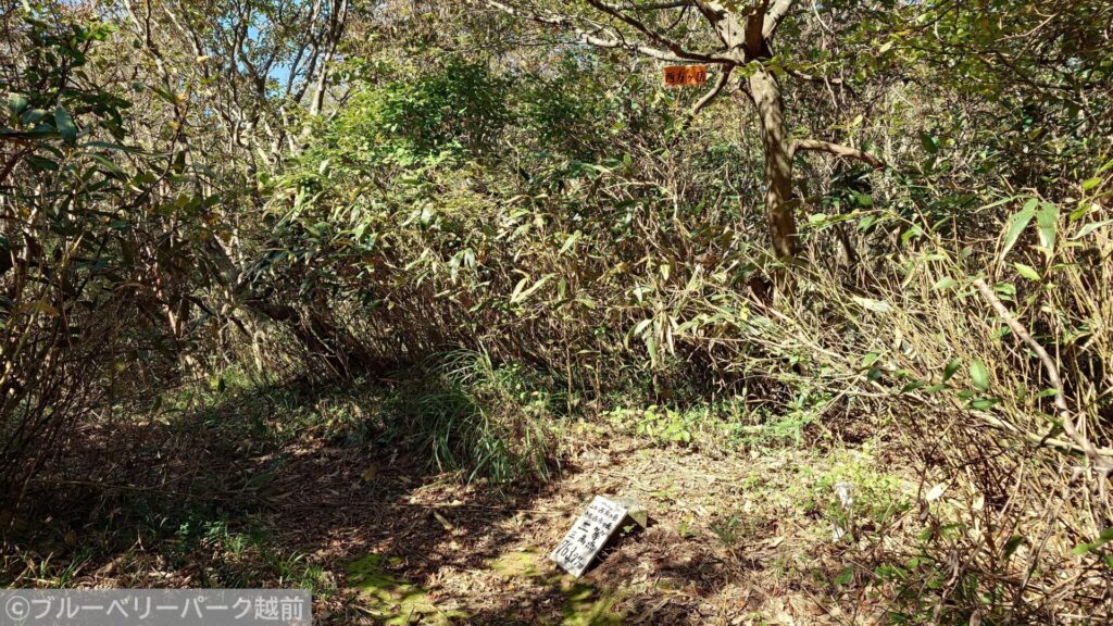 三角点や標識のある場所に到着です。なお、この場所からの展望はありません。