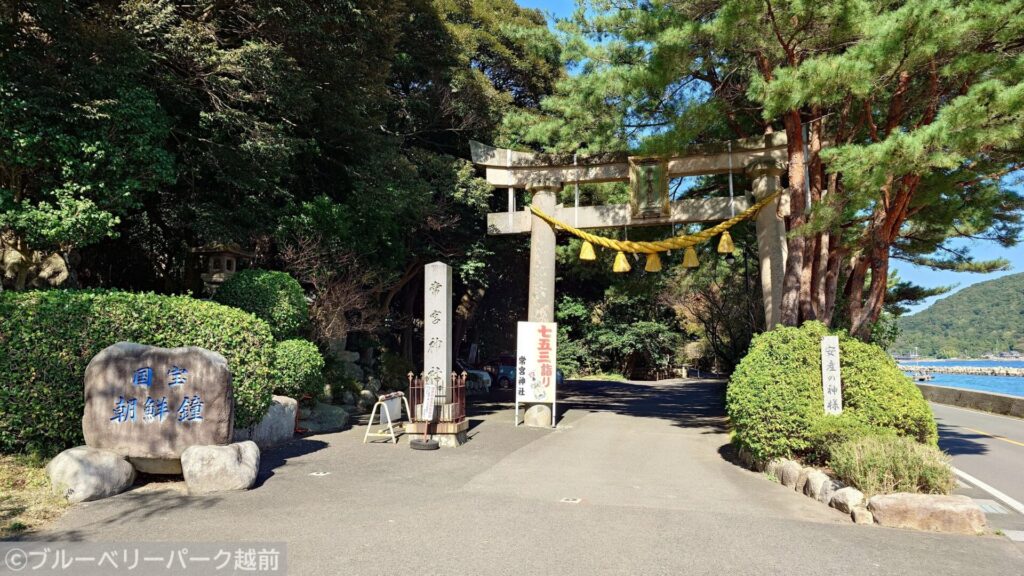 常宮神社氣比神宮の奥宮とされており、安産の神様として親しまれています。また、舞殿からは、美しい海を臨むことができます。
