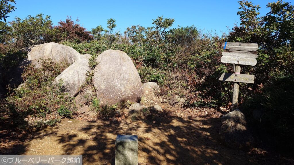 また、南東方面には伊吹山が見え、さらには、山域の展望スポットで唯一、西側方面の若狭湾青葉山が望める場所でもあります。