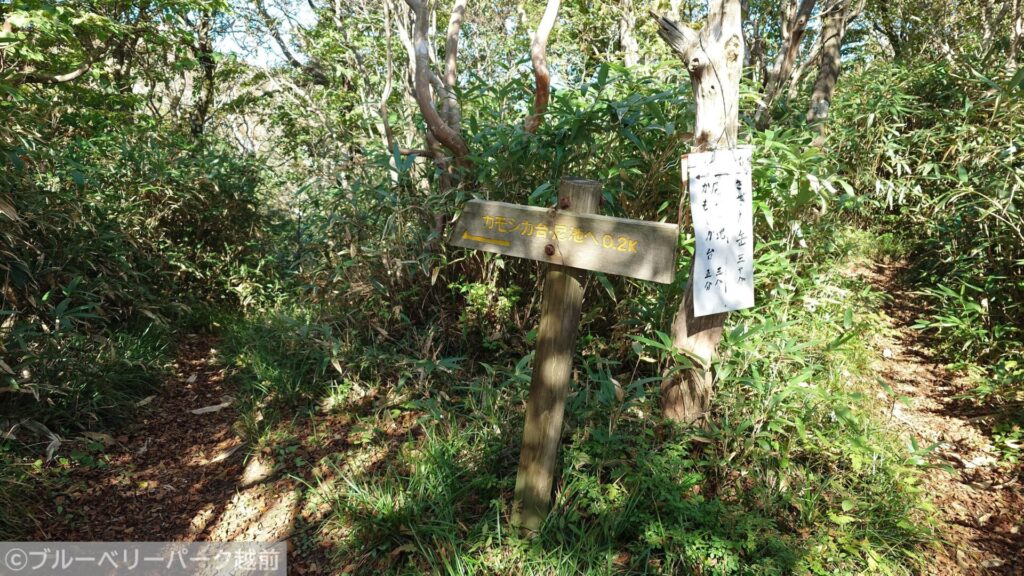 しばらくすると分岐があり、標識の方向へ200mほど進むと、カモシカ台があります。