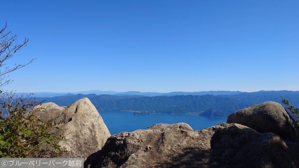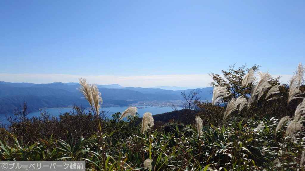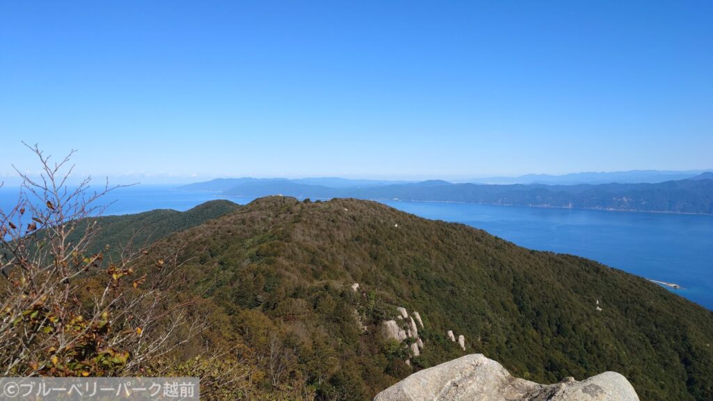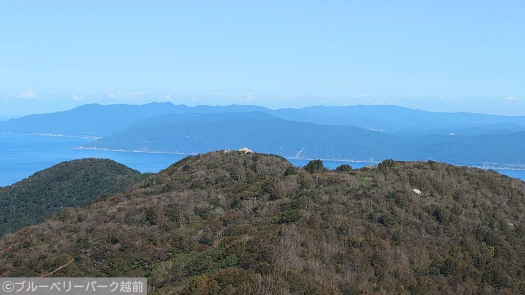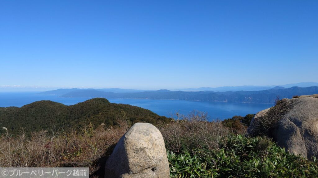 また、蠑螺ヶ岳の山頂からは、敦賀湾や海越しの白山をはじめ、鬼ヶ岳日野山部子山も望むことができます。