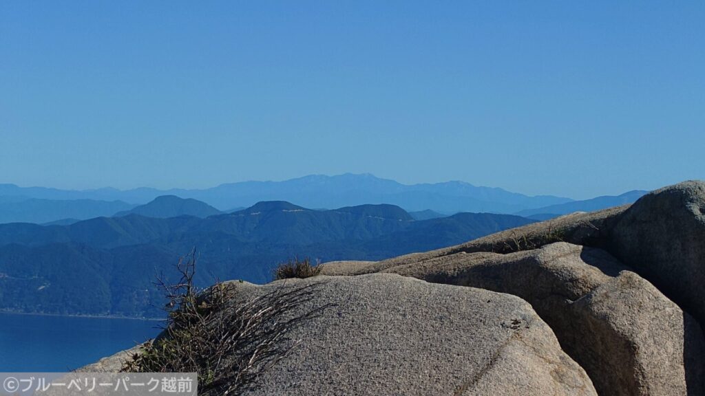 また、海越しの白山をはじめ、鬼ヶ岳日野山部子山も望むことができます。