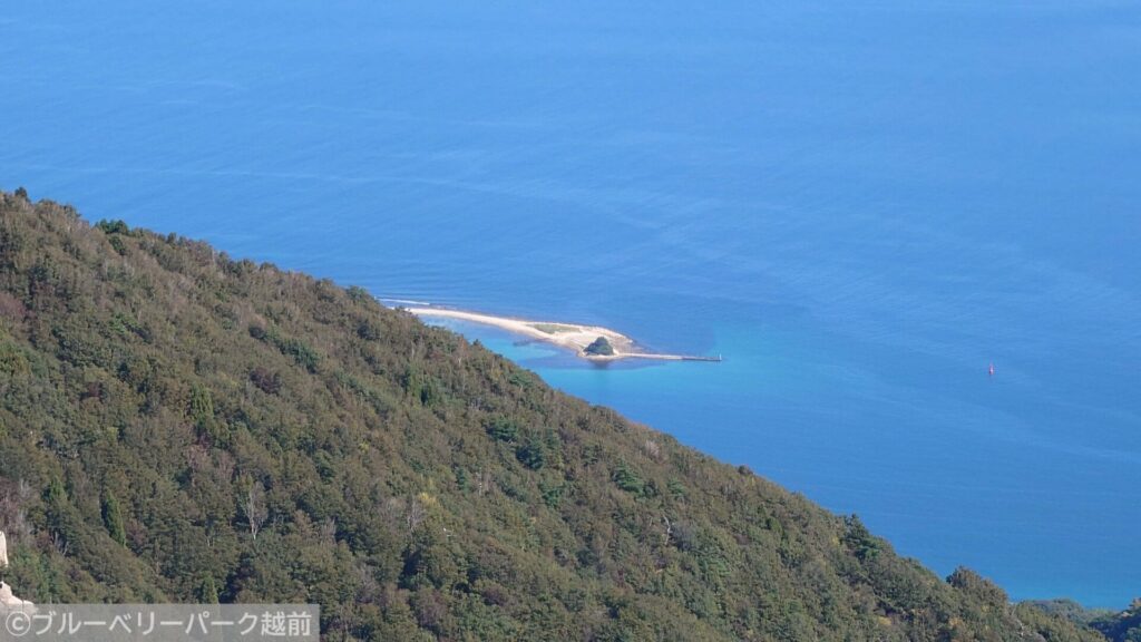 眺め岩からは絶景が広がります。眼前には日本海敦賀湾が広がり、そこに浮かぶ水島も視界に入ります。
